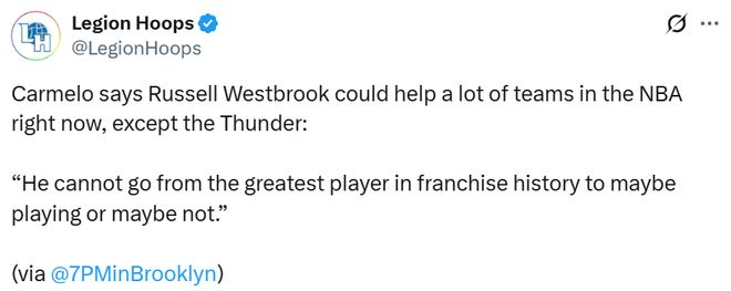 北京時間10月12日,9屆全明星后衛(wèi)威少仍未與任何NBA球隊簽約,前隊友安東尼在播客節(jié)目上談及此事,他很同情威少的處境,也感同身受。
